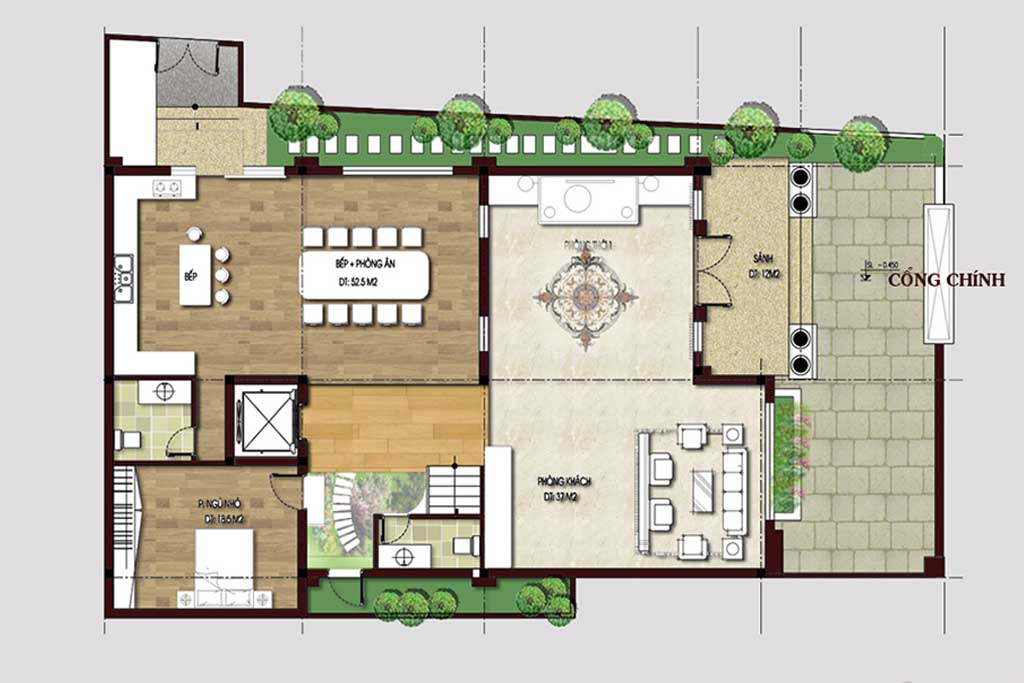 Mặt bằng công năng tầng 1 của biệt thự