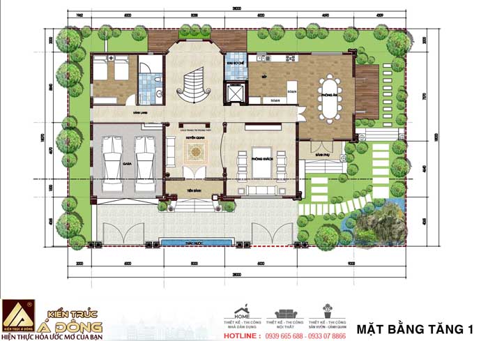 Mặt bằng công năng tầng 1 của biệt thự